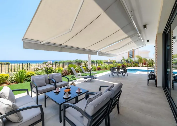 Situata a una distanza di 2 km dall'Anastasia Aquamania Waterpark, By The Beach - Emerald Seaview Villa offre una terrazza con vista sul giardino. Soggiornando nella villa, a pochi minuti dall'Agia triada, gli ospiti possono usufruire del Wi-Fi e del servizio di parcheggio.